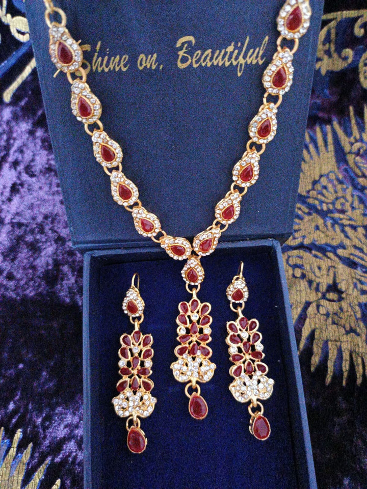 Channel the soft, radiant glow of twilight with the Golden Hour necklace set. Its elegant crimson hues and graceful details are designed to capture attention without overwhelming your style. Crafted with fine detailing, this set adds just the right sparkle for those moments when you want to stand out—whether it’s a casual evening gathering, a festive celebration, or a formal occasion. The versatile design transitions effortlessly from day to night, making it a must-have addition to your jewelry collection.