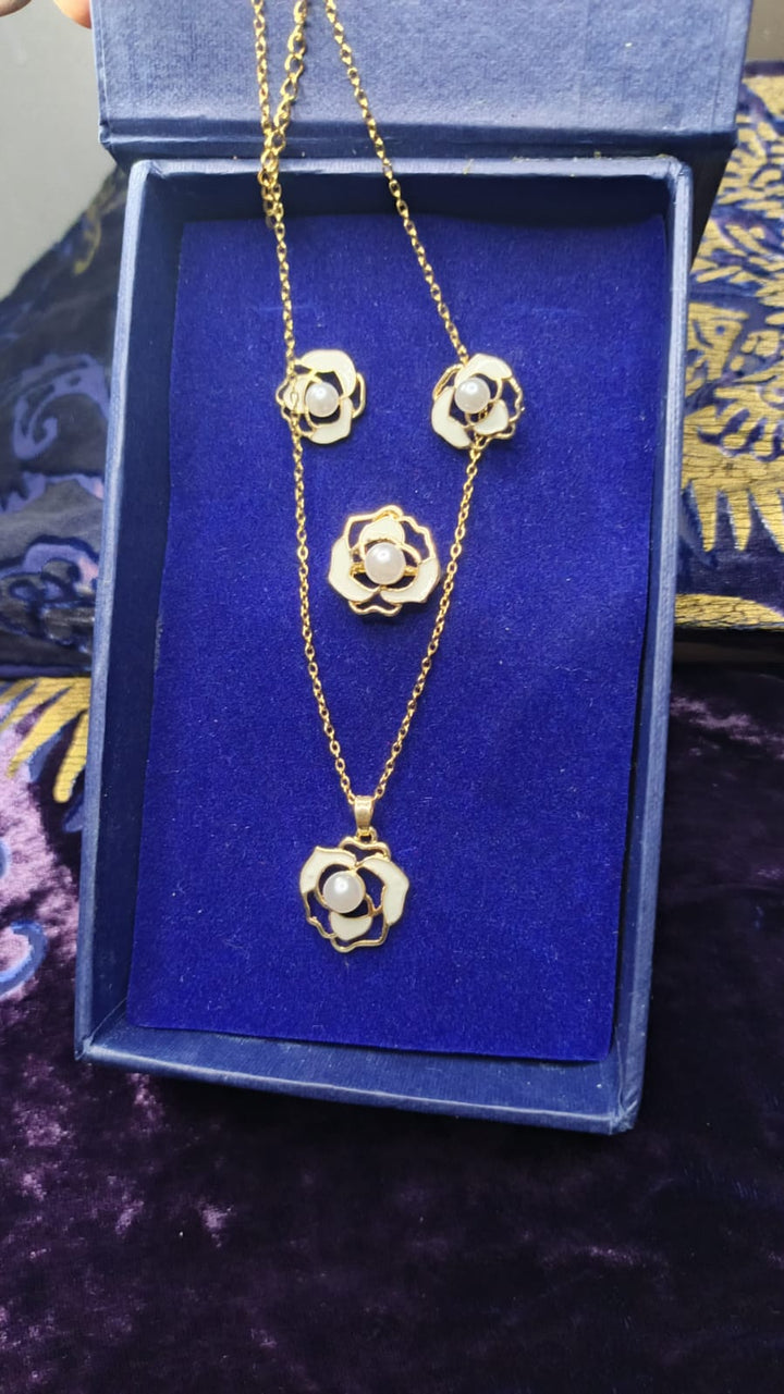 The Ivory Belle Set embodies refined simplicity with a touch of modern charm. Featuring luminous pearls paired with sleek golden accents in an artistic floral design, it delivers timeless elegance for women who appreciate subtle sophistication. Whether styled for everyday polish or reserved for special occasions, the Ivory Belle Set adds grace and beauty to any look with its delicate yet striking appeal.