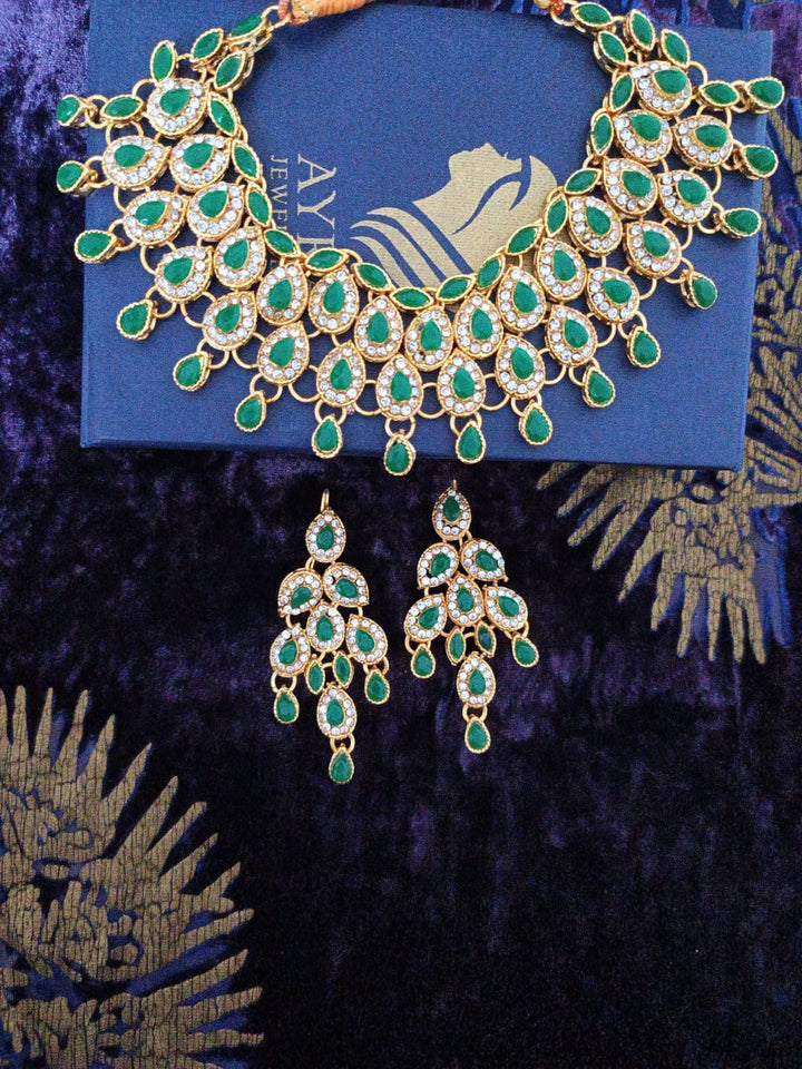 Make a bold statement with the Regal Charm choker set, designed for those who appreciate modern elegance with a touch of grandeur. Featuring luxurious jewel-toned droplets and an intricately crafted design, this piece transitions effortlessly from festive gatherings to intimate celebrations. With its striking appeal and refined finish, the Regal Charm Set ensures you stand out in style wherever you go.