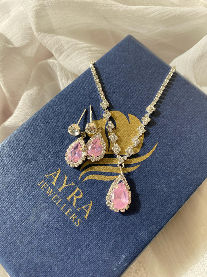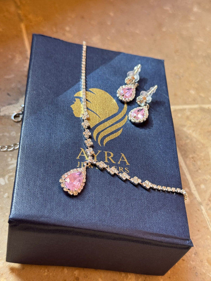 Grace meets glamour with the Rosé Teardrop Set, designed to bring a touch of romance to your style. Featuring a delicate silver-tone necklace and matching...